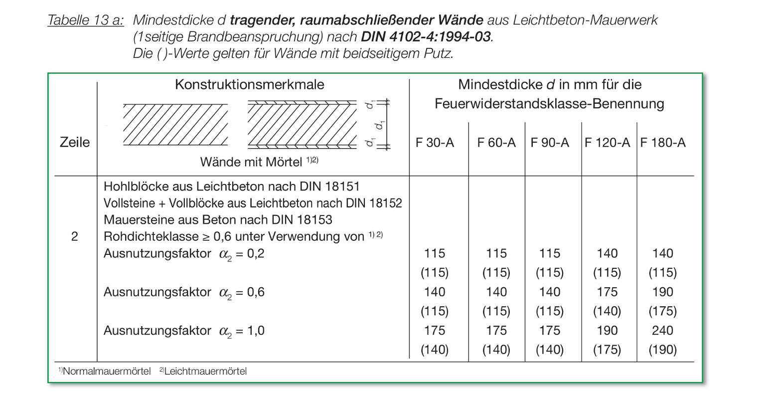 Mauerwerk und Bauteile von KLB Klimaleichtblock bestehen hauptsächlich aus haufwerksporigem Leicht- und Normalbeton. Werden sie mit Normalmauermörtel oder Leichtmauermörtel vermauert, fallen sie unter die Regelungen des Eurocode 6. Anders verhält sich dies bei KLB-Plansteinen. Für deren Einstufung in Feuerwiderstandsklassen sind allgemeine bauaufsichtliche Zulassungen nötig. In der Broschüre sind nun die Mindestwanddicken aller zugelassenen KLB-Plansteine tabellarisch aufgeführt.