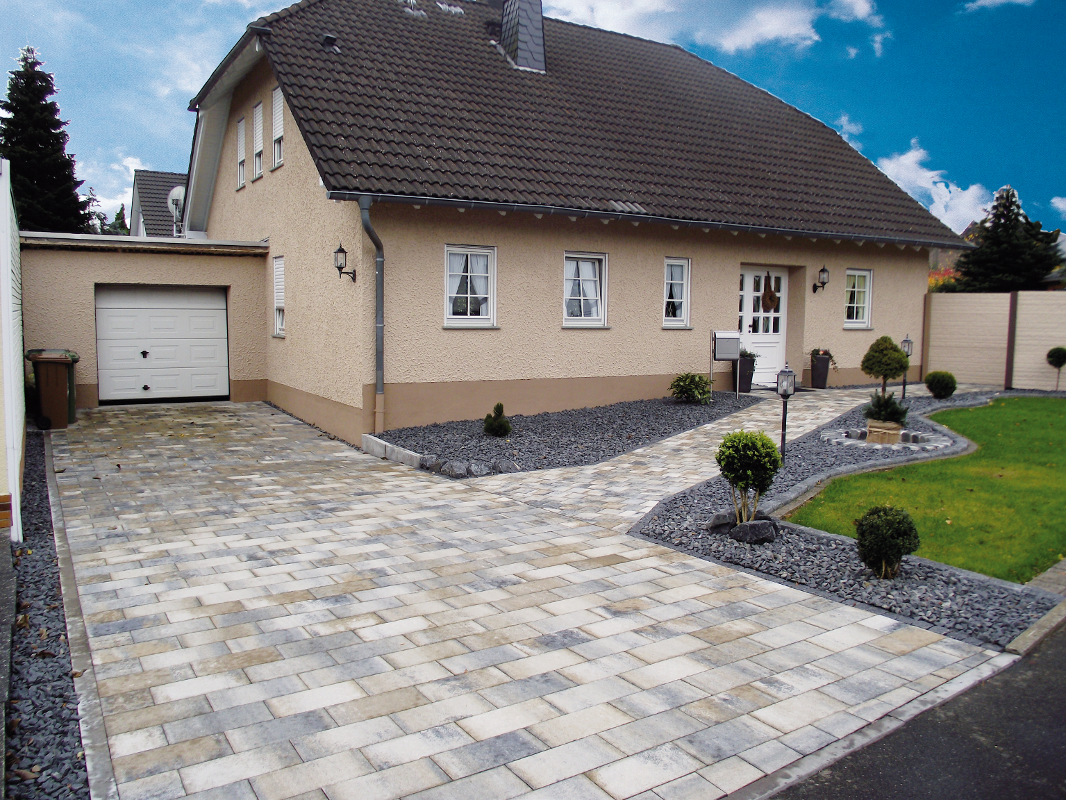 Ein Haus ist erst dann ein Zuhause, wenn es den eigenen Stil widerspiegelt. Dasselbe gilt natürlich auch für jene Flächen, die es umgeben, wie Garten, Terrasse und Co. Besonderes Augenmerk liegt dabei häufig auf Einfahrten und Vorgärten, denn jeder weiß: Der erste Eindruck zählt. Ganz gleich ob urbaner Chic in modernen Anthrazitnuancen oder mediterranes Ambiente mit warmen Tönen – im Baukasten des „KLB-Gala-Systems“ findet sich etwas für jeden Geschmack. Das Wort „Gala“ steht dabei als Abkürzung für „Garten- und Landschaftsbau“. In unterschiedlichsten Formen und mit variabler Oberflächenstruktur fügen sich die Steine in das individuelle Gestaltungskonzept ein und bilden eine dekorative Symbiose mit jeder Bepflanzung.