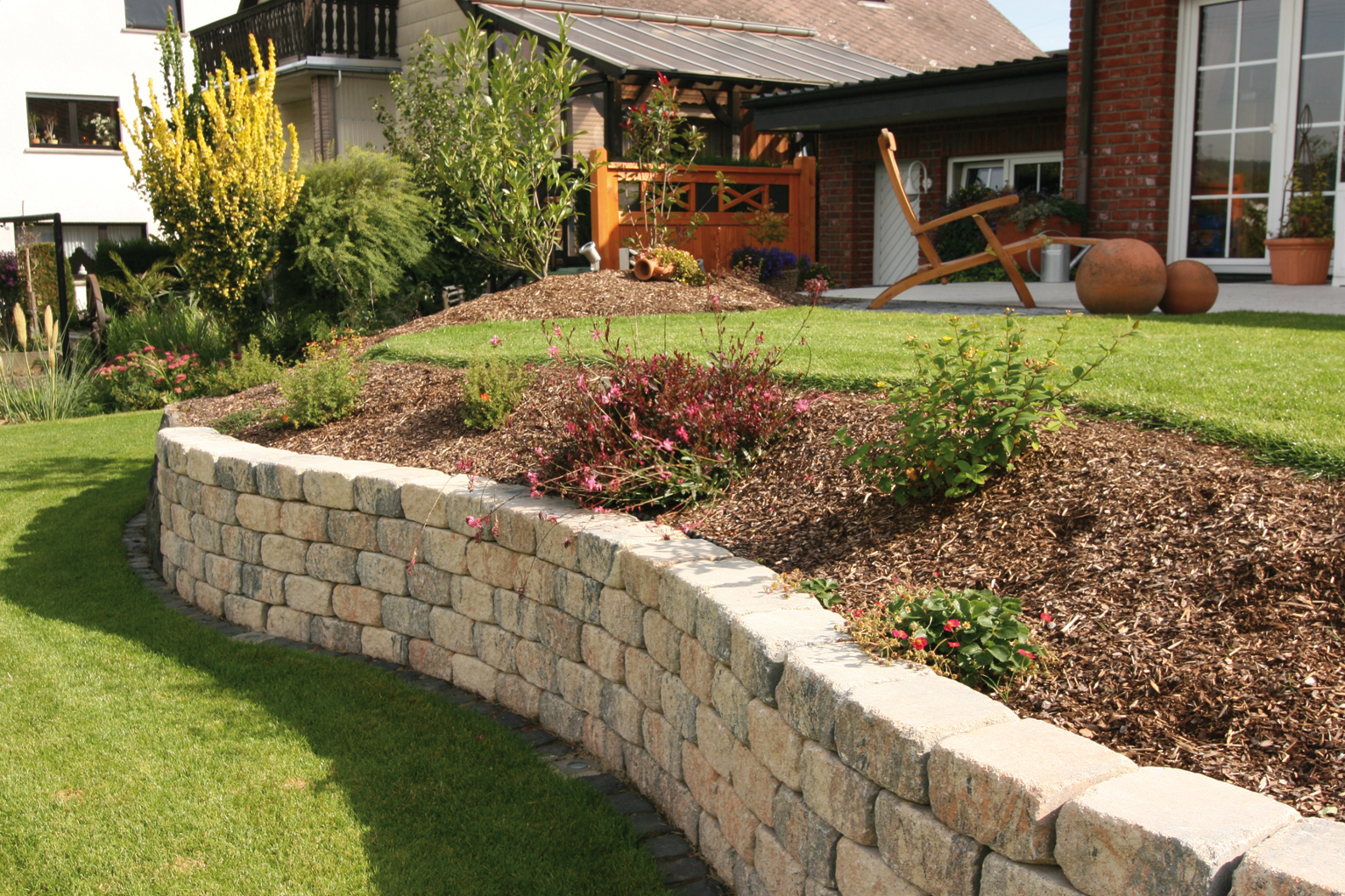 Auch um einen ruhigen Rückzugsort gleich hinter dem Haus zu gestalten, eignen sich die Produkte hervorragend. Minimalistisch elegant oder üppig bewuchert: Der Traum von einer grünen Oase als Ort der Entspannung muss keiner bleiben. Dank des modularen Aufbaus der Gala-Systeme sind die Steine miteinander kombinierbar. Das garantiert höchstmögliche Flexibilität bei der Umsetzung persönlicher Wünsche.