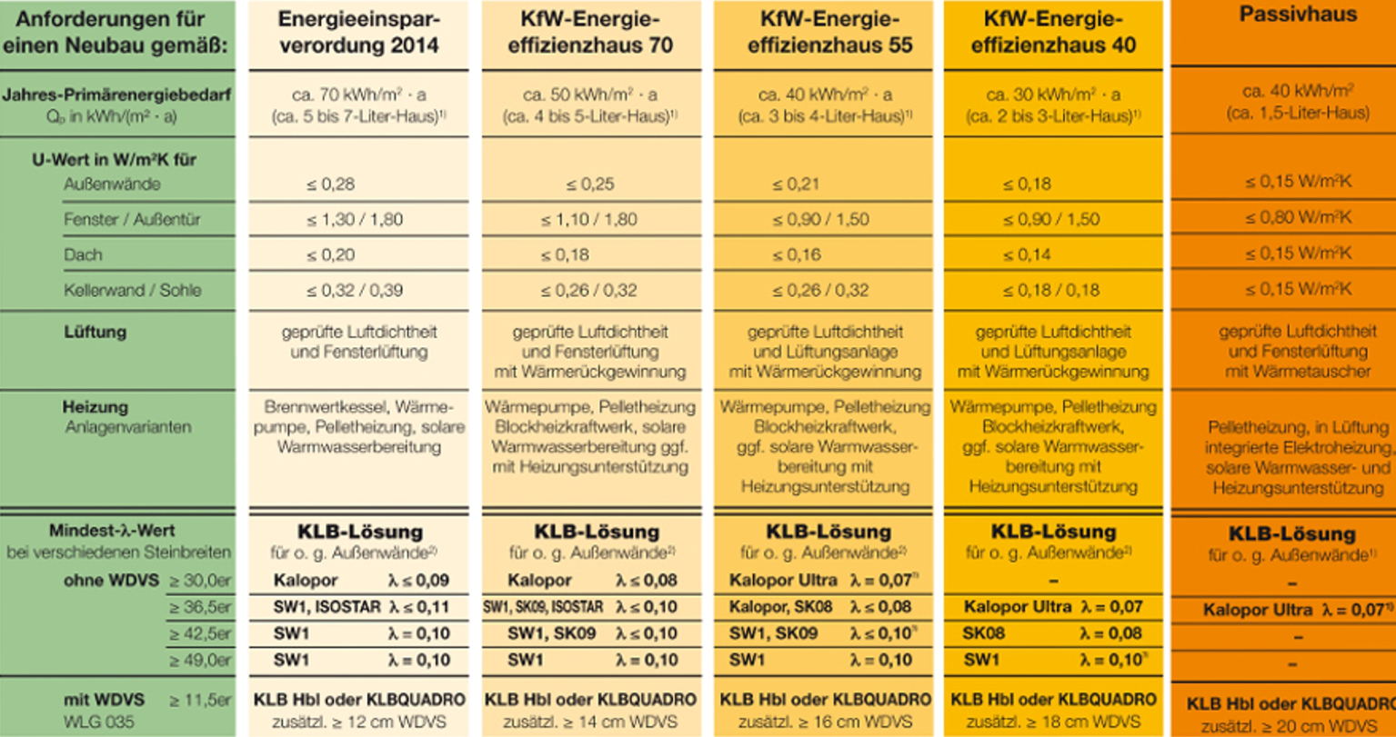 sich detailliert über verschiedene Mauerwerkskonstruktionen aus Leichtbeton zu informieren. Die Broschüre ordnet die Produkte aus dem KLB-Sortiment dabei den gewünschten Energiesparzielen zu und gibt dabei auch Auskunft über Förderprogramme.
