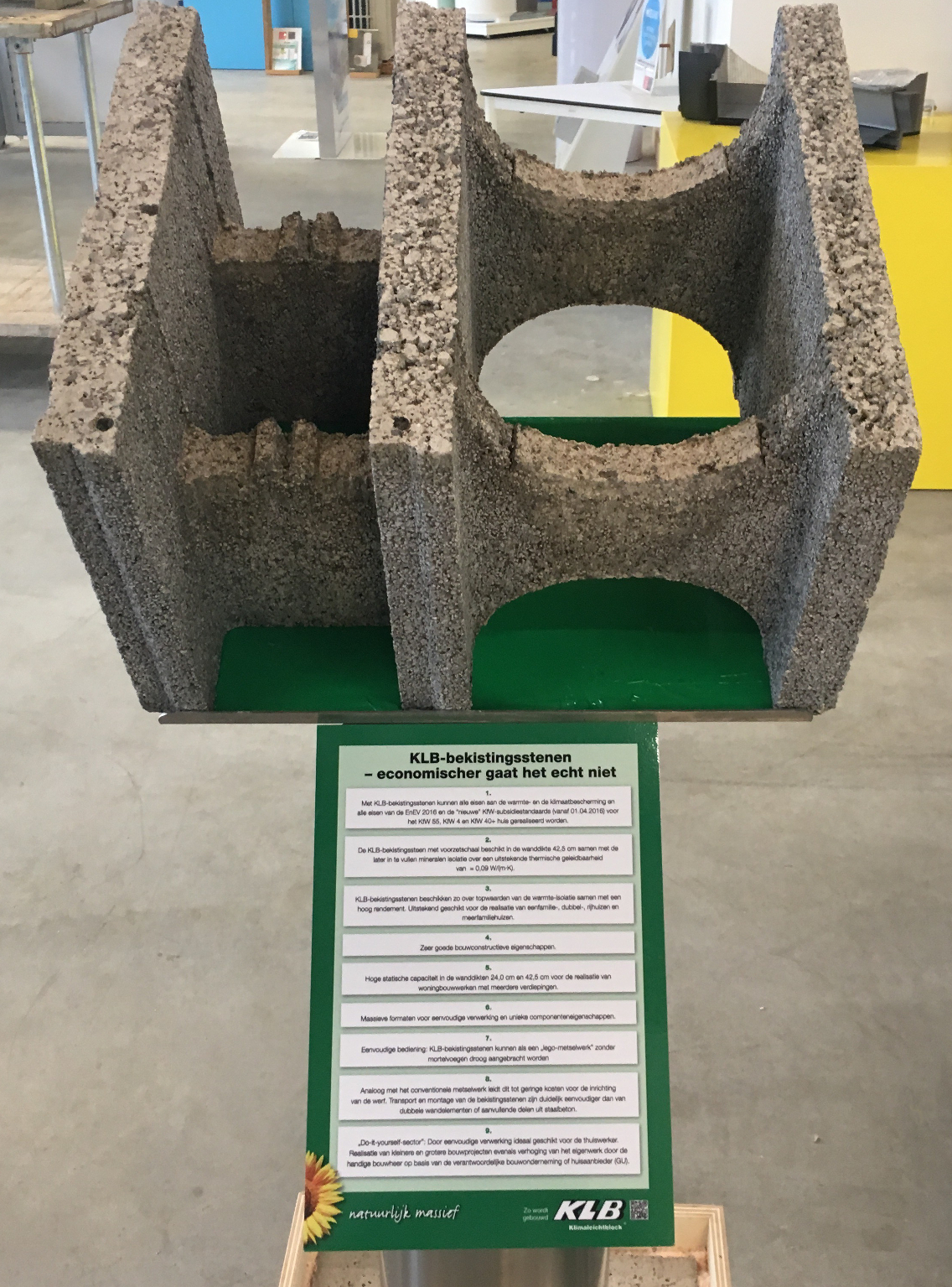 Rotterdam is voor de warenhandel van de EU-landen de poort naar de wereld. Aan de grootste diepwaterhaven van Europa werden in 2015 ongeveer 466 miljoen ton goederen gelost. Niet ver van de dokken en lastkranen bevindt zich een belangrijke expositieruimte voor de bouwindustrie: het Innovatie Centrum Duurzaam Bouwen. Als showroom met afwisselende exposanten en als platform voor de dialoog brengt het vertegenwoordigers uit politiek, research en industrie samen. Een expositieruimte krijgen daar echter alleen ondernemingen die over bijzonder milieuvriendelijke producten beschikken. Als grootste Duitse verkoopmaatschappij van lichtbeton stelt KLB-Klimaleichtblock nu ter plaatse zijn duurzame metselstenen met behulp van verschillende wandvarianten voor.