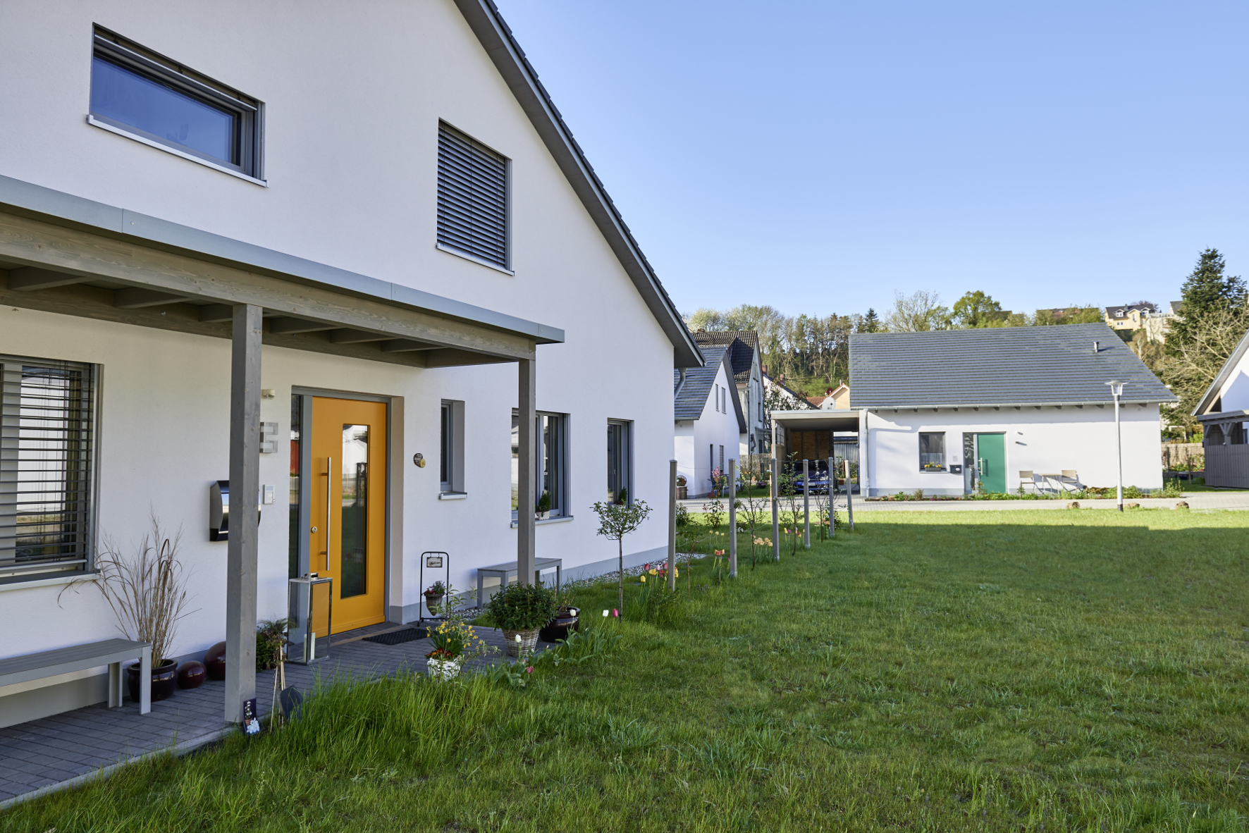 Mit einer Gebäudehülle aus Leichtbeton sind Bauherren auch später noch gut beraten. So enthält der poröse Stein viele kleine Lufteinschlüsse, die ähnlich einer Daunenjacke wärmedämmend wirken. Eine hohe Energieeinsparung ist damit auch während der Nutzungsphase gewährleistet – deutlich über dem im Gebäudeenergiegesetz (GEG) geforderten Niveau. Darüber hinaus profitieren die Bewohner vom hohem Brand- und Schallschutz sowie der Langlebigkeit des massiven Wandbaustoffes.