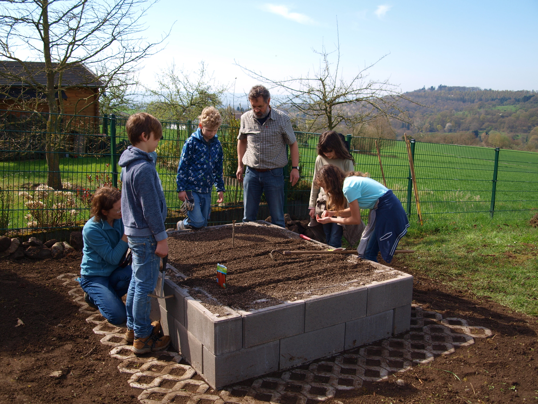 Grundschüler in Melsbach weihen ihr neues Hochbeet aus KLB-Leichtbeton ein