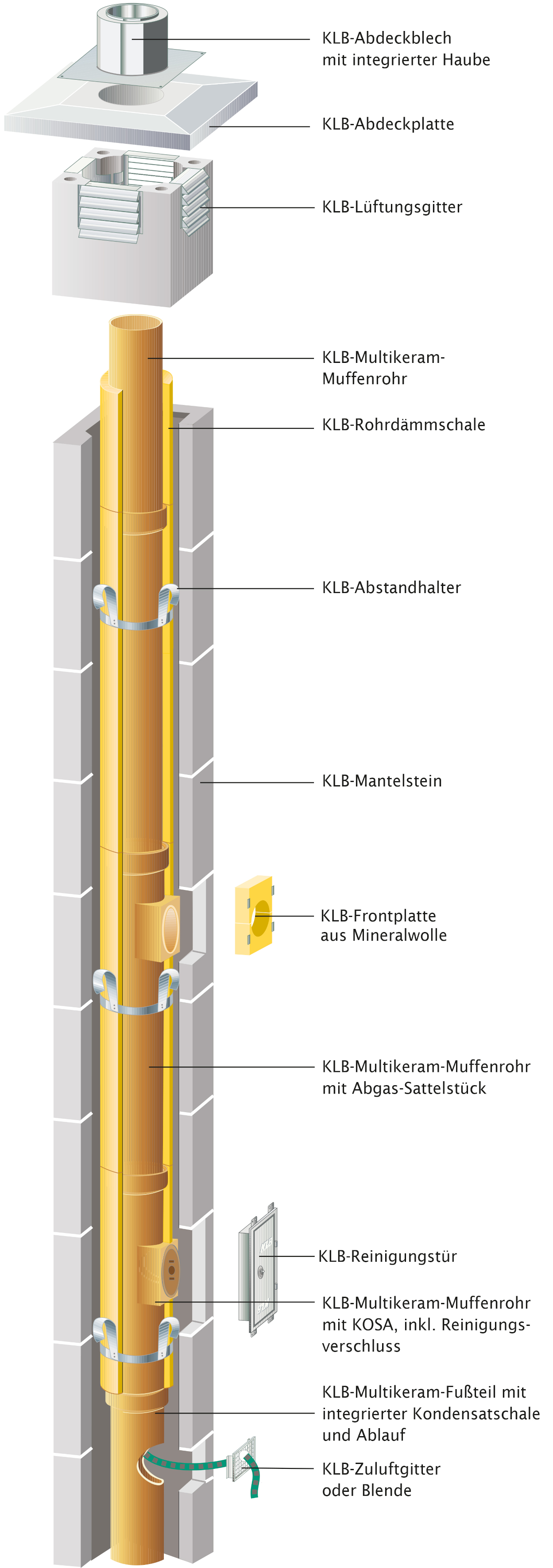 Leichtbetonhersteller KLB Klimaleichtblock führt verschiedene Schornsteine und Luft-Abgasanlagen in seinem Sortiment, die bauphysikalisch und funktionell genau aufeinander abgestimmt sind. Sie werden sowohl im Neubau als auch bei Sanierungen eingesetzt. Das Fundament des umfangreichen Produktportfolios bildet die feuchteunempfindliche Abgasanlage Multi W3G, bestehend aus Leichtbeton-Mantelstein, Dämmung und Muffenrohr. Sie kann nicht nur für Pelletkessel, sondern für alle Regelfeuerstätten im Trockenbetrieb eingesetzt werden. Dabei hält sie Abgastemperaturen von bis zu 400 Grad Celsius stand und verfügt über eine entsprechende bauaufsichtliche Zulassung des Deutschen Institutes für Bautechnik (DIBt, Z-7.1-3326) in Berlin. Im Rahmen einer Untersuchung des Fraunhofer-Instituts für Bauphysik IBP (Prüfberichtsnummer HoE-009/2021) lagen die üblicherweise im Betrieb entstehenden Emissionen an flüchtigen organischen Verbindungen bei der geprüften Multi W3G-Abgasanlage deutlich unter den vorgegebenen Grenzwerten gemäß AgBB-Schema 2018. Zudem konnten bei dieser Untersuchung keine kanzerogenen Gefahrstoffe nachgewiesen werden – ein wichtiger Aspekt für die gewünschte Wohngesundheit.