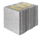 Die drei Kammern der 249 mm hohen KLB-Heavy-Planblöcke sind über die ganze Steinhöhe mit Dämmstoffstecklingen ausgefüllt. Im Stoßfugenbereich werden sie mit einer Nut- und Federausbildung verbunden, die nicht durch einen Dämmstoffsteckling unterbrochen ist.