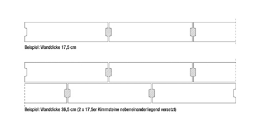 Mit den KLB-Kimmsteinen wird die so genannte Kimmschicht errichtet. Die Kimmsteine werden auf der Deckenplatte in eine Dickbettfuge aus Normal- oder Leichtmörtel entsprechend den statischen und bauphysikalischen Anforderungen verlegt um ggf. vorhandene Unebenheit auszugleichen. Sie bilden nach entsprechender horizontaler Ausrichtung eine planebene Schicht, auf der nach Aushärtung des Mörtels die darauf folgenden Planelemente oder Plansteine mittels Dünnbettmörtel versetzt werden können.